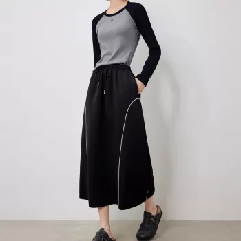 Stylish Autumn Mid-Length A-Line Umbrella Skirt with Elastic Waist